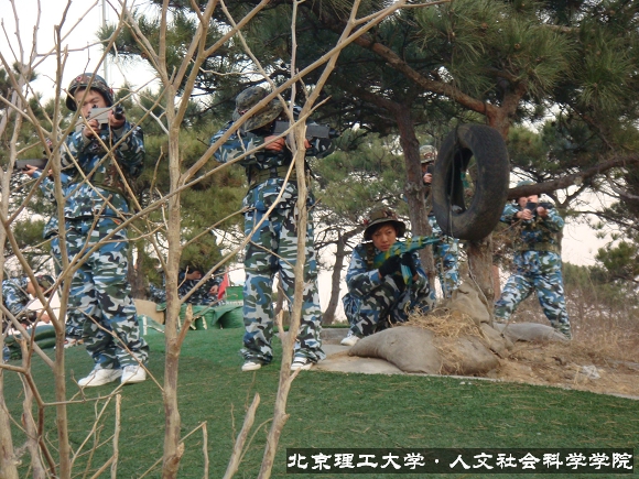活动中,同学们随机分成蓝、绿两队,按照教练的要求,选出自己的队长,利用高科技的模拟装置,模拟战斗场景,“战斗”异常激烈,经过三个场景的模拟对抗,蓝队以2:1的总比分获胜。在每个场景的间隙,素质拓展项目的教练,还为大家生动的讲述了卢沟桥保卫战、皖南事变等革命历史,在模拟战斗中同学们已经体会到了战争的残酷与紧张,听教练讲述了先烈在战场上为国捐躯的事迹后,许多人更加深刻的认识到了民族解放、人民翻身的艰难,更有许多同学自发来到佟麟阁将军的塑像前,向这位在卢沟桥保卫战中奋勇捐躯的爱国将领致以崇高的敬意。
