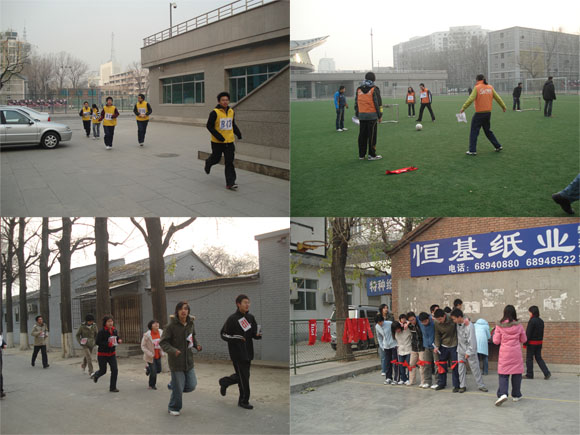 面对这场体力与耐力的考验,所有的参赛队员都是精神抖擞,士气十足。发令抢一响,各队队员以迅雷不及掩耳之势冲出起跑线。 出东操场后,各组按照各自的行动路线进行比赛。每到一处活动点,队员们顾不上休息,便开始趣味活动。每项活动中参赛队员都是竭尽全力,相互默契配合,力争更好更快的完成项目。运送“炸弹”项目中,选手们相互依靠,共同前进;跳大绳项目中,选手们鱼贯而上,有条不紊;呼拉圈过山车项目中,选手们相互传递呼拉圈准确迅速,每项活动都充分体现出成员间的团队协作精神。一项活动结束,选手们马不停蹄地赶往下一站。天气虽然寒冷异常,但比赛开始不久,每名队员早已是大汗淋漓,气喘吁吁。奔跑的疲惫和项目的困难并没有击垮选手们,他们相互鼓励,相互扶持,继续前进……