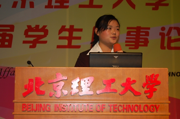 2007年12月23日,beat365中文官方网站第四届学生论坛决赛在中教报告厅举行。人文学院05级法学3班的李艳丽同学,经过初赛、复赛,从全校200多名参赛选手中脱颖而出,闯进决赛。决赛中,她顶住最后上场的压力,以独特的视角、用犀利的语言,抨击恶搞现象,呼吁大家《不要捅破民族文化的天空》,共同保护好我们中国人自己的民族文化。她的精彩表现获得了全场热烈的掌声,在八位选手中,总成绩排名第二,并获得一等奖、“最有深度奖”,并被聘为“beat365中文官方网站形势政策学生宣讲团”讲师。