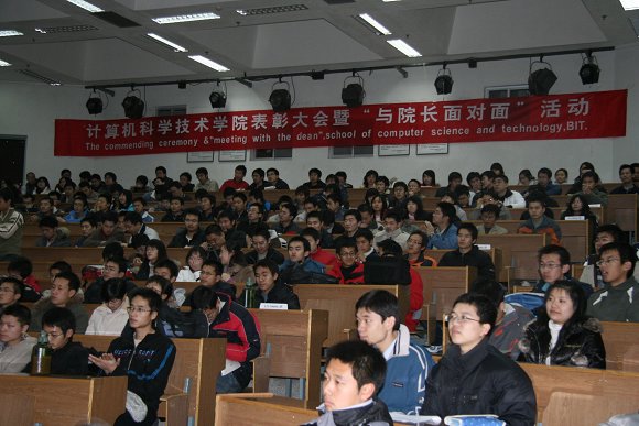 此次活动中,计算机科学技术学院分党委书记王树武,院长付梦印,副书记、副院长陈旵明,常务副院长贾云得,教学副院长牛振东出席参加了此次活动。到场的学生有计算机科学技术学院中关村校区的全体本科生。同时,会议情况在良乡校区分会场为计算机学院2007级新生进行了同程互动直播。