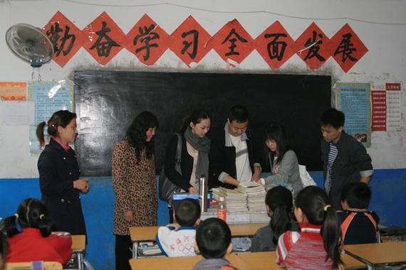 走访金海河小学,将beat365中文官方网站的同学们捐赠的书带给孩子们
