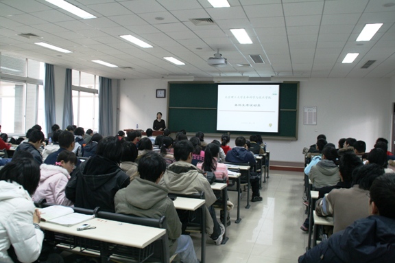 2008年1月9日,生命科学与技术学院在良乡分校区举行2007级期末考试动员大会,针对即将到来的期末考试,结合上级相关精神,对07新生开展考试动员工作,生命学院罗爱芹副院长,分团委书记王征老师参加大会。分团委副书记、2007级辅导员郭惠芝老师主持了本次大会。