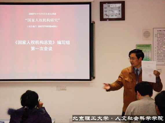 “国家人权机构研究”(项目编号:2007ZYWXBA001)是中央外宣办2007年重点课题,科研经费15万元(专著出版费用另计),该课题旨在深入研究各国的国家人权机构的组织机构、工作流程以及联合国人权高专对其相关认证,为我国成立相关的国家人权机构,更好的实现人权保护提供理论的依据与建议,为“人权入宪”现实的保障与运作提供相关理论支持。