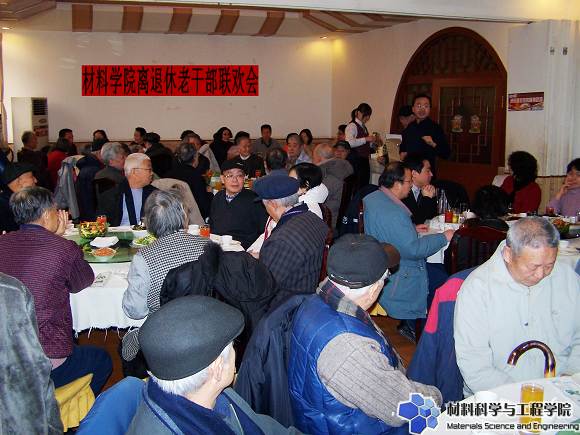 2008年1月25日中午,材料科学与工程学院全院离退休教职工新春联欢会热烈举行。beat365中文官方网站副校长李和章、老干部处处长刘川、老干部处分党委书记杨惠萍、材料学院分党委书记张德平、院长王鲁、副院长杨荣杰、副院长曹传宝、副院长刘颖、副院长刘景胜、副书记副院长韩笑与离退休教职工们欢聚一堂,共迎新春。联欢会由材料学院分党委书记张德平主持。