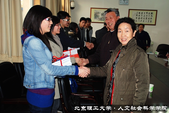 最后,关心下一代委员会的顾问代表们向人文学院的学生代表赠送了图书并合影留念。本次座谈会获得圆满结束。