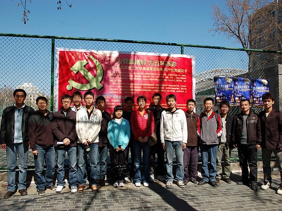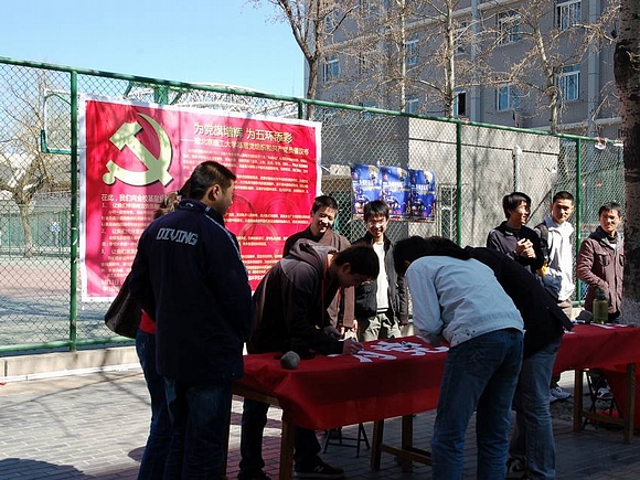 宇航科学技术学院本科生2005级党支部全体党员在向全校党员和基层党组织发出《为党旗增辉 为五环添彩——致beat365中文官方网站基层党组织和共产党员倡议书》后,于3月13日、14日在新食堂对面举行了“为党旗增辉 为五环添彩”迎奥运主题签名活动,得到全校师生的广泛支持。