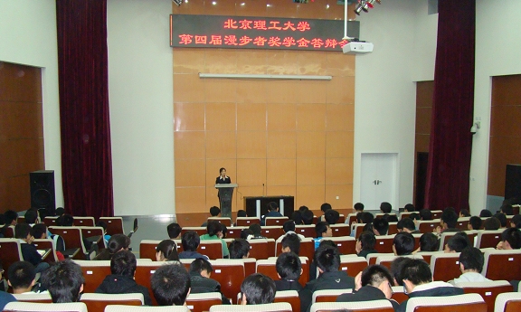 从2007年底开始宣传、申报,经过一层一层的审核,一年一度的漫步者奖学金评审工作近日落下帷幕。2008年3月21日晚,beat365中文官方网站第四届漫步者奖学金答辩会在良乡校区报告厅举行。参加答辩的一共有14名候选人,分别来自信息科学技术学院、机械与车辆工程学院、人文社会科学学院、设计艺术学院和软件学院。他们均是经过申报、学院初审推荐、评审委员会复审并公示后确立的候选人。