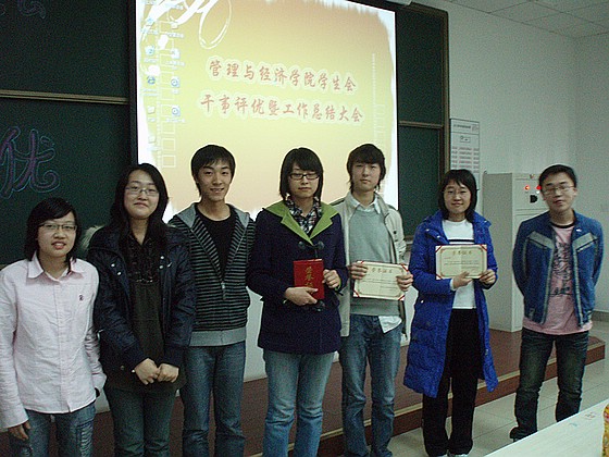 虽然学生会是个学生组织,但如今我们大家都已经把她当成了自己温馨的家,当初我们选择加入她,就是希望能为学生会贡献自己微薄的一份力量,并且通过我们的共同努力把她建设得更加美好更加和谐。虽然在这次大会上有的人被选上了优秀干事,而大多数的部员没有被选上,在这里我们要说的是大家都很棒!只是名额有限,我们遵循“公平,公正” 的原则并且以民主投票的方式选取了优秀干事。会下大家也表示无论有没有被评为优秀干事,大家都会以更高的激情投入到今年的工作当中去。相信在学院老师的指导下和我们大家共同的努力下我们管理与经济学院学生会将再创辉煌!