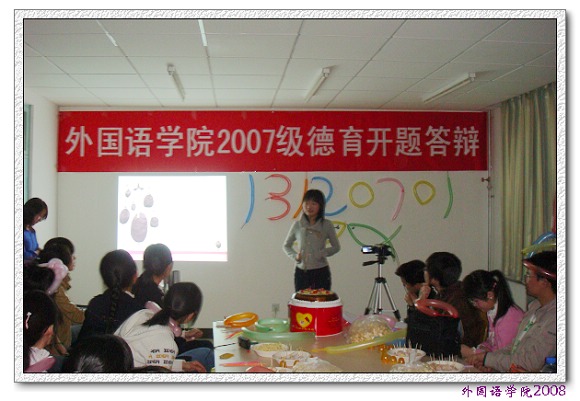 3月26日晚,外国语学院13120701班在良乡校区静园C活动室举行了德育答辩开题报告会。外国语学院2007级辅导员张磊老师,班主任栗卓老师,日语专业课老师谭峥老师、张元卉老师,英语课栗欣老师,共同见证了此次关于成长和梦想的报告会。