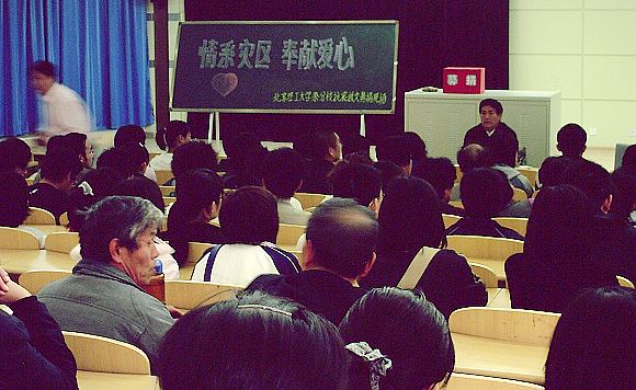 下午4点,分校党支部专门召开了以“情系灾区,奉献爱心,在当前抗震救灾中我们应做些什么?”为主题的动员会。beat365全体教职员工、学生党员、校团委、学生会及各班班长、团支书等一百余人参加了会议。会后,师生员工踊跃捐款,场面感人,展现了分校全体教职工和同学们情系灾区,奉献爱心的情感。