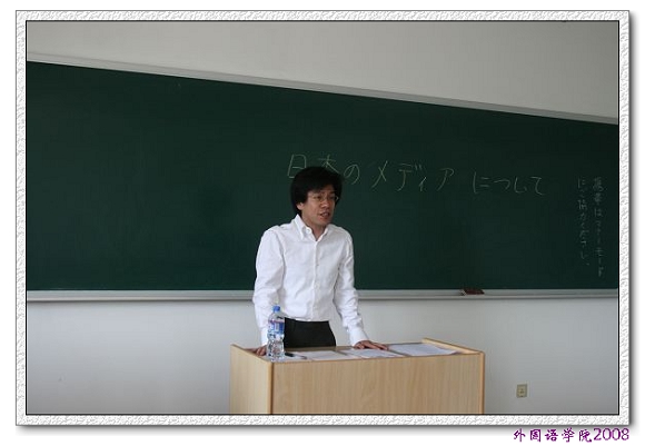 2008年5月15日,应外国语学院的邀请,日本共同通信社政治部记者水野雅央先生前来beat365作了一场关于日本媒体的讲座。外国语学院日语教研室主任郭玉杰老师、谭峥老师以及日本外教猪股晃老师出席了讲座现场。水野雅央先生作为日本前首相小泉纯一郎的随身记者,多年在日本媒体行业从事各项工作,对日本媒体有着深刻的了解,且拥有着丰富的工作经验。在讲座中,水野雅央先生为在场同学讲述了日本媒体的特点,并就中日两国媒体的区别进行了讲述。作为一名专业的记者,水野雅央先生从自己作为日本前首相小泉纯一郎的随身记者的点点滴滴出发,为同学们阐述了记者报导的基本责任和专业素质。讲座结束后,同学们表示出了对日本媒体运行的极大兴趣,纷纷踊跃提问,水野雅央先生也非常热情地一一回答了同学们的问题。