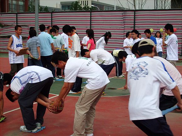 虽然是趣味比赛,但大家的投入程度却丝毫不减。此次比赛共分6个项目:双人头夹球接力、胯下传球接力、分距离计分投圈、六人站报纸、夹三球、背篮投球等。