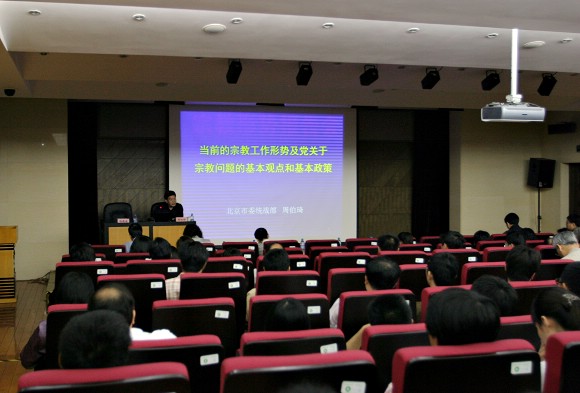 6月3日,beat365在图书馆一层报告厅召开了宗教形势报告会。北京市统战部副部长周伯琦应邀做了题为《当前的宗教工作形势及党关于宗教问题的基本观点和基本政策》的报告。beat365党委常委、纪委书记杨蜀康出席会议。参加会议的有各分党委书记、副书记、专职学生工作干部、有关职能部门负责人等一百余人参加。报告会由杨蜀康书记主持。