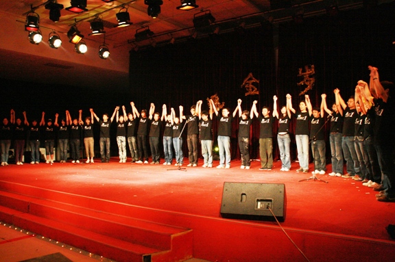 感谢同学,感谢老师,毕业生们十分感谢学院的老师们四年以来对大家的教导与培养,送班主任老师一束鲜花,道一句“老师,您辛苦了”,表达了同学们对老师的感激眷恋之情。04级辅导员胡文老师一曲感人的歌声,把晚会推向了高潮,同学们纷纷走到台上与胡文老师一起合唱,手牵手,纪念一起走过的四年时光。