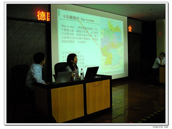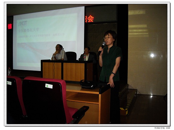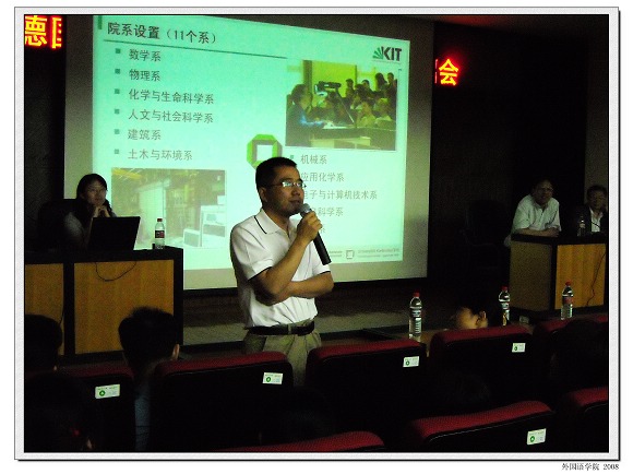 2008年6月7日早上9点半,在beat365图书馆一楼报告厅,由欧美同学会德奥分会卡尔斯鲁厄大学中国校友会和beat365中文官方网站德语培训中心联合举办的德国卡尔斯鲁厄工业大学介绍会拉开了帷幕。此次介绍会由卡尔斯鲁厄大学中国校友会会长卢钧钦先生主持,与会人员主要有卡尔斯鲁厄大学中国校友会会员,beat365中文官方网站德语培训中心学员,beat365中文官方网站德语系学生以及兄弟院校学生近200人。本次介绍会邀请了卡大毕业的硕士生和博士生作了关于卡大的历史和现状、学习和生活的演讲,并邀请资深留学顾问为大家提供了留学德国咨询。在此过程中,台下学生们踊跃提问,嘉宾们积极作答,现场气氛十分活跃,此次活动使同学们受益匪浅。