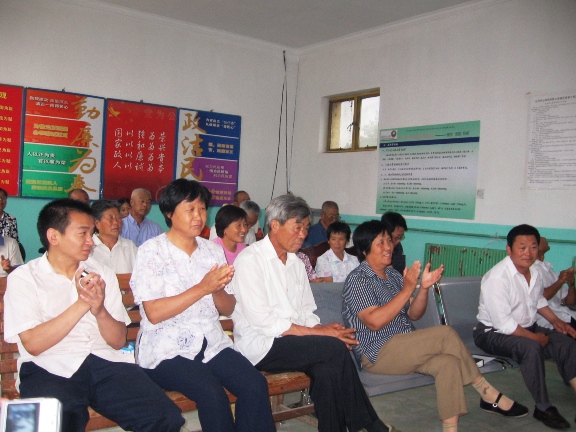 我支部党员结合自身专业优势,在查阅大量文献的基础上,精心制作了幻灯片,从营养、运动、治疗三部分为村民详细讲解心脑血管疾病的防预知识。报告内容深入浅出,贴近生活,在场的村民们认真听取讲座,并提出了许多问题,与同学们展开热烈的讨论。