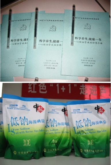 为村民准备的宣传健康的小册子和低碘盐