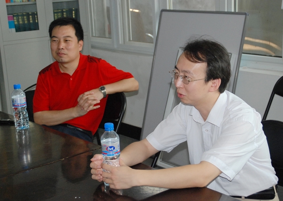 贾利军老师首先来到天桥街道办事处,在天桥街道办事处工作的几位同学已经到志愿者服务站开展工作。同学们在这里的工作很繁忙,大家都已经投入到天桥街道的工作中了。天桥街道团委书记李飞与贾院长交流了这段时间同学们的工作安排,并表扬了同学们的积极表现。