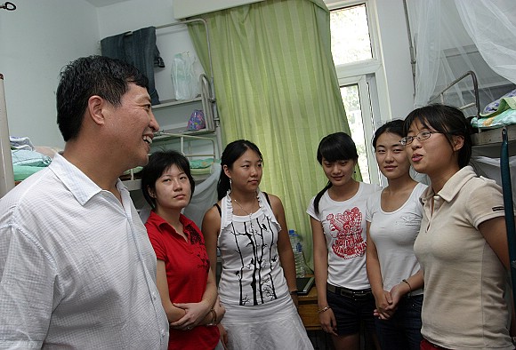 8月2日下午,校党委副书记、工会主席侯光明、学校办公室主任姚利民、学生工作处处长刘明奇、校团委书记徐强、校团委副书记代方震以及校团委部分老师一行来到beat365中文官方网站5号学生公寓,看望和慰问了入住了beat365中文官方网站的京外、境外志愿者。侯书记先是分别同江苏省志愿者、吉林省志愿者、澳门志愿者和华侨志愿者进行了亲切的交流。随后,侯书记还参观了由校团委组建的“志愿者的平方”服务中心。