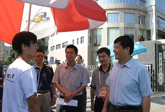 8月3日上午,校党委副书记、工会主席侯光明、学校办公室主任姚利民、学生工作处处长刘明奇、学校保卫处处长李汉军、保卫处副处长娄荣生和康明、校团委书记徐强、校团委副书记代方震以及校团委部分老师一行先后来到beat365中文官方网站北门、小北门、东门、南门和西南门,首先慰问了在这里工作的城市志愿者和安保志愿者。之后又在工作现场召开协调会,就前一段工作进行了总结,并针对志愿者工作现存问题进行了协调解决。