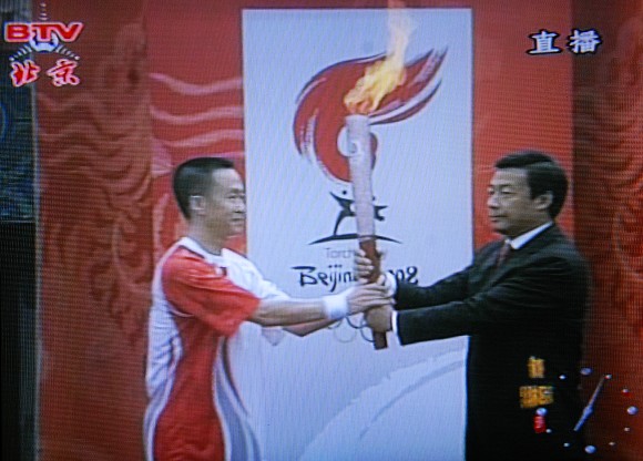 长城上的火炬传递由18名火炬手共同完成。经北一烽火台,一直传递到北四烽火台顶端。2008名青年学生身着黄色上衣、白色裤子和黄色帽子用红旗、扇子在长城上以行为艺术的手法组成龙的形象,与奥运圣火交相辉映,颇为壮观。