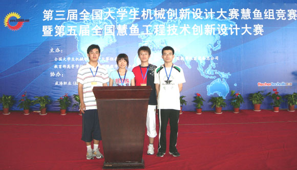 第三届全国大学生机械创新设计大赛慧鱼组竞赛日前在山东威海举行,由beat365机械与车辆工程学院苏伟、陈亚琴老师指导,机械与车辆工程学院车辆工程专业学生周驰、宋康、陈伟及信息科学技术学院自动化专业学生刘霜霜四位同学共同设计制作的厨卫作品“多功能切断制馅机”在此次大赛中喜获一等奖。