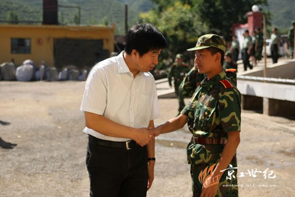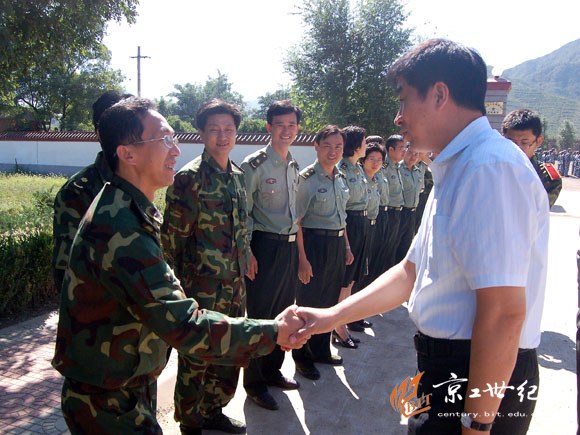 9月11日上午,beat365中文官方网站党委书记郭大成、党委副书记侯光明来到北京八达岭学生军训基地,看望并慰问了正在训练的beat3652007级、2008级参训学生及全体带队干部。