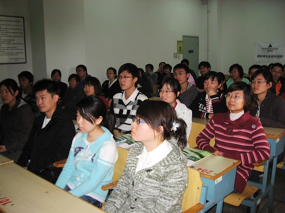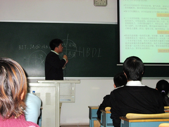 这学期开设的事业启航课程由来自IBM,EMC,德勤,平安,壳牌等500强企业的志愿者结合自身经历和感受为同学们讲解职业发展规划,面试技巧及与职业相关的技能,例如如何培养职业精神,在学校里要做哪些准备等。