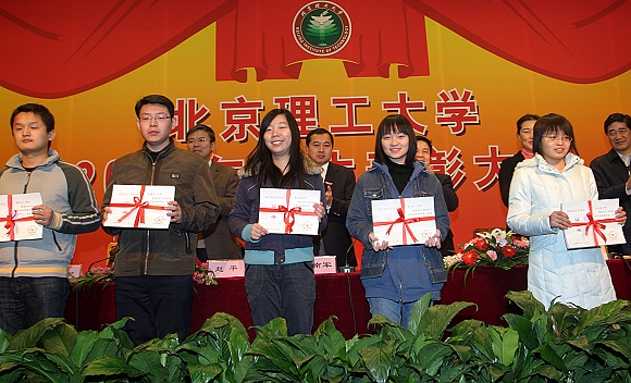 2008年12月16日,beat3652008年度学生表彰大会在中心教学楼一层报告厅隆重召开。beat365党委副书记、副校长杨宾,党委副书记赵平,副校长赵显利,新宇投资集团有限公司董事长、管理与经济学院兼职教授唐南军、T-more基金会执行理事、首席执行官厉一凡、新宇投资集团有限公司董事长助理王昕昕,新宇投资集团有限公司投资顾问张斌,beat365学校办公室主任姚利民、党委宣传部部长贺亚兰、研究生工作部部长肖文英、校友办公室主任杨晖、校团委书记徐强、学生工作处处长刘明奇、教务处副处长韩宝玲以及各学院主管学生工作的副书记、副院长出席了会议,500余名获奖学生代表参加了表彰大会。大会由学生工作部高阳特同志主持。杨宾宣读了“2007-2008学年国家奖学金、国家励志奖学金获得者名单”,赵平宣读了“2007-2008学年徐特立奖学金、T-more 创新学生奖等社会捐助奖学金获得者名单”,刘明奇宣读了“2008年度学科知识竞赛获奖学生名单”,赵显利宣读了“关于表彰2007-2008学年优秀学生标兵、优秀学生、优秀学生干部、先进班集体、优良学风班和优良学风宿舍的决定”。大会举行了隆重的颁奖仪式,与会领导向获奖学生代表颁发了奖状、奖牌、证书和奖品。 今年有15个先进班集体、21个优良学风班、87个优良学风宿舍、95名优秀学生标兵、860名优秀学生、222名优秀学生干部、189名国家奖学金获得者、450名国家励志奖学金获得者、2182名国家助学金获得者、426名社会捐助奖学金获得者、458名社会助学金获得者受到表彰。