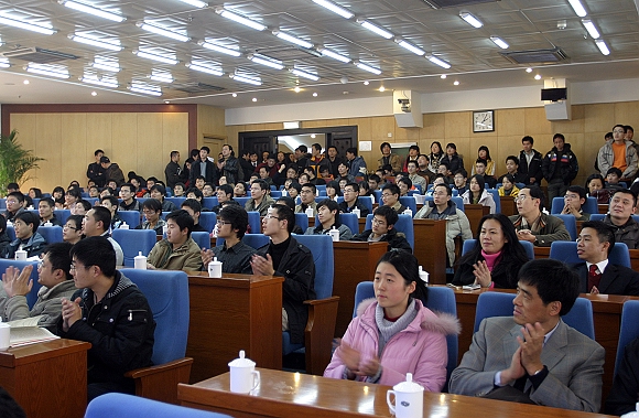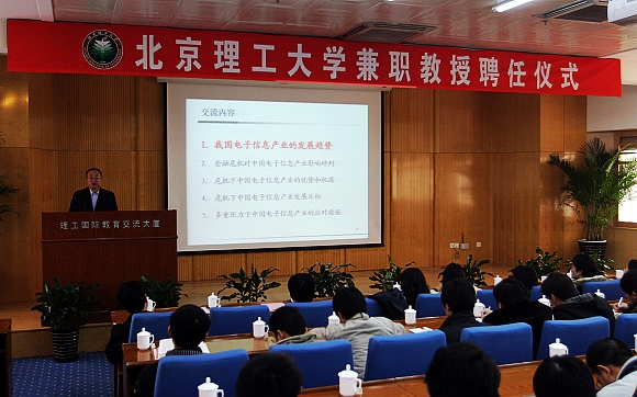聘任仪式结束后,周子学教授为学校的师生做了精彩的学术报告“国际金融危机下电子信息产业的发展”。
