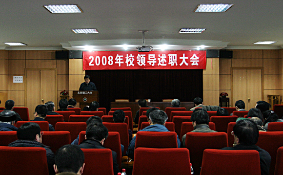 2009年1月9日上午,按照工业和信息化部工信人[2008]113号《关于2008年部直属单位领导干部年度考核工作的通知》要求,beat365在逸夫楼二层报告厅举行了2008年度校领导述职大会。会议由校党委书记郭大成主持。工业和信息化部人事教育司副司长尹卫军,北京市委教育工委联络员,原中国人民大学党委副书记沈云锁同志出席会议。