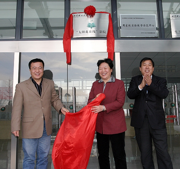 教育部社会科学司魏小波处长、中国教育电视台吕学武副台长与beat365副校长李和章共同为“太阳花在线”影院揭牌。