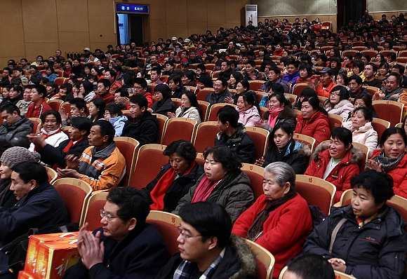 团拜会结束后,大家兴致勃勃地观看了由著名导演冯小刚执导的贺岁影片《非诚勿扰》。