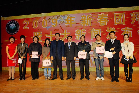 团拜会上,师生代表进行了精彩的歌舞表演,整个会场气氛跌宕起伏,春意盎然。2009年新春团拜会暨十大新闻发布会在一片欢乐祥和的氛围中结束。