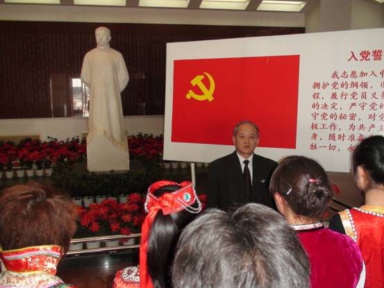 在李大钊纪念馆举行了入党宣誓仪式,宣誓仪式由学生党小组组长张立文同志主持并领誓,在李大钊同志的塑像面前,面对鲜红的党旗,所有同志庄严肃立,预备党员进行了庄重的入党宣誓,正式党员也随之一起重温了入党誓词。