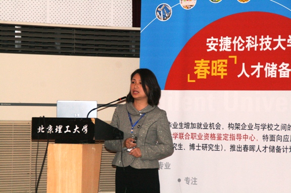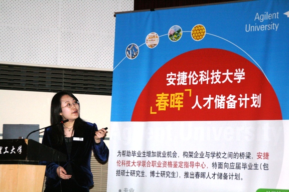 安捷伦公司部门经理晁怀惊女士首先向大家介绍了安捷伦公司的历史、分析行业就业前景和发展机会,并且用丰富的实例向同学们讲解了如何才能成为专业分析人才。随后,安捷伦公司专业培训师向与会同学介绍了分析技术发展的前沿技术,特别是安捷伦公司在科研创新工作方面取得的成就,以及这些技术给相关行业和产业带来的巨大推动作用,这个环节为与会同学们提供了专业方面的最新信息,引起了大家的极大共鸣。