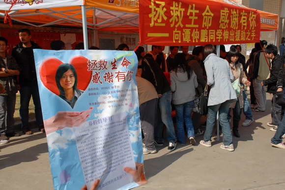 2008年11月30日,beat365珠海学院05级软件专业学生谭仲鹏经确诊患上肝上皮样血管内皮瘤,这是一种罕见的以上皮样细胞为特征的血管内皮肿瘤,如果就诊不及时,病变细胞就会扩散到整个肝脏,而肝移植手术成为挽救这条生命的唯一的希望,但是20余万元昂贵的手术费让家庭贫困的谭仲鹏望而却步。消息传来,立即引起了珠海学院师生的高度关注,大家纷纷伸出援手,献出爱心。捐款现场,阳光下,人潮涌动,爱心涌动。