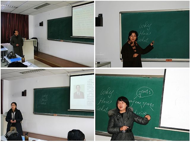 为迎接北京市高等教育学会研究生英语教学研究分会第一届青年教师教学基本功比赛,也为了以优良的成绩迎接即将到来的研究生教育优秀工程评估,beat365中文官方网站外国语学院研究生英语教研室组织全体青年教师开展教学基本功比赛,比赛于2009年11月10中午开始,所有参赛教师都充分展示了自己的创意,在讲台上尽情展现各自的讲课风采。