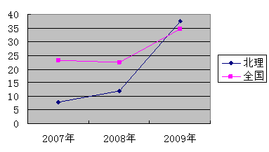 图为2007年-2009年司法考试beat365中文官方网站法学院与全国通过率数据比较