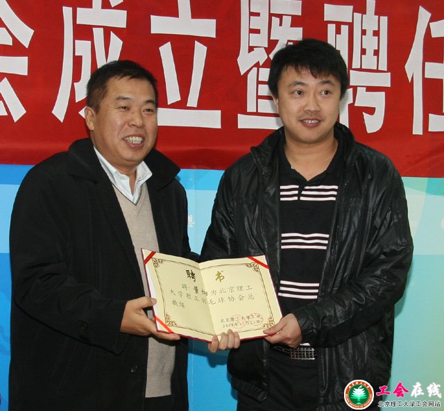会上,羽协会长、机电学院李明首先向出席仪式的全体同志表示热烈欢迎。他介绍了协会筹备过程和今后的工作设想。仪式上,学校对羽协名誉主席、总教练颁发了聘书。羽协聘请了赵平、董炯、黄强、韩棋、栗苹为名誉主席,聘请董炯先生为总教练。随后,总教练董炯先生在会上发言,对于协会的成立表示了热烈的祝贺,羽毛球运动是一项非常好的群众体育活动,这是积极响应党中央关于每天锻炼一小时,健康生活一辈子的号召,并通过羽协的活动促进学校的体育活动的开展,最后对协会的发展提出了建议。