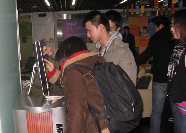 同学们抵达后,首先来到了新技术演示厅,微软高校关系部的李贝老师为同学们简单介绍了微软公司在中国的研发情况,讲解演示了许多最新的微软技术和产品,并展示了其中具有创新性的技术特性。