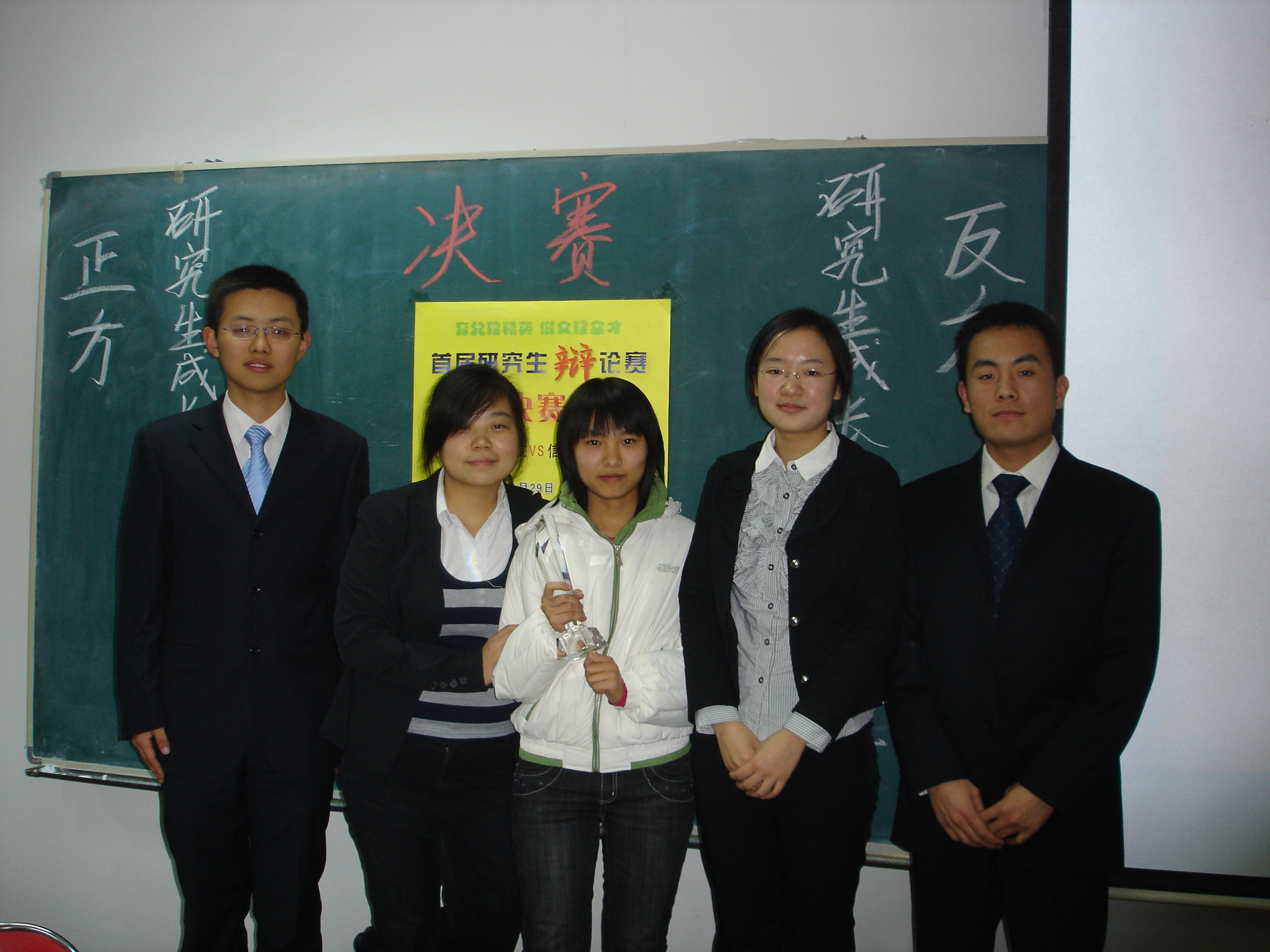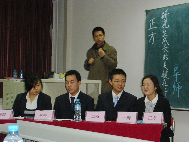 11月29日晚7点,beat365中文官方网站第一届研究生辩论赛决赛在研究生教学楼606紧张开场。我院与信息与电子学院就“研究生成才的关键在导师”和“研究生成才的关键在自身”为论点展开激烈的唇枪舌战。我院最终获得首届辩论赛的冠军。
