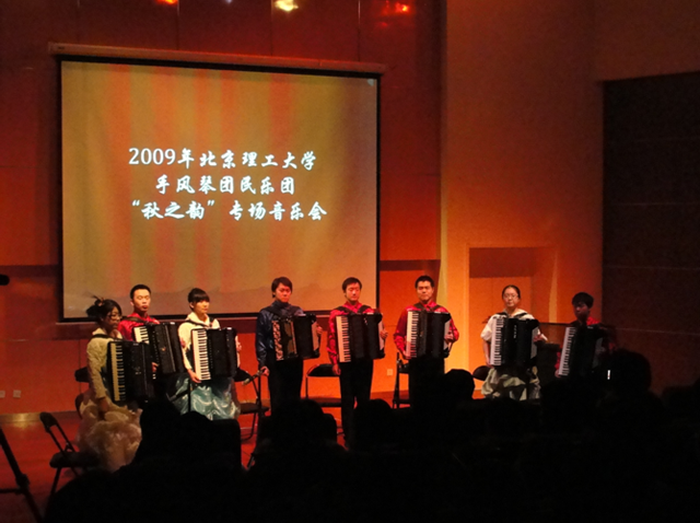 本次“秋之韵”手风琴沙龙是继08年良乡《与你同在》专场音乐会之后,手风琴艺术团再举办一次专场音乐会。音乐会汇集了手风琴团排练曲目的精粹,浓缩了一年来手风琴团师生共同努力的成果,音乐会的圆满成功得到了校领导以及到场师生的一致肯定。大学生艺术团手风琴乐团将继续探索,坚持走贴近广大师生需求的路线,努力奉献出更多的让同学们喜闻乐见的音乐盛宴!与此同时,手风琴与民乐也是第一次牵手演出,取得了良好的效果,在以后的演出中beat365中文官方网站大学生艺术团将会努力创新演出形式,为beat365广大师生提供更加丰富多样的艺术节目。