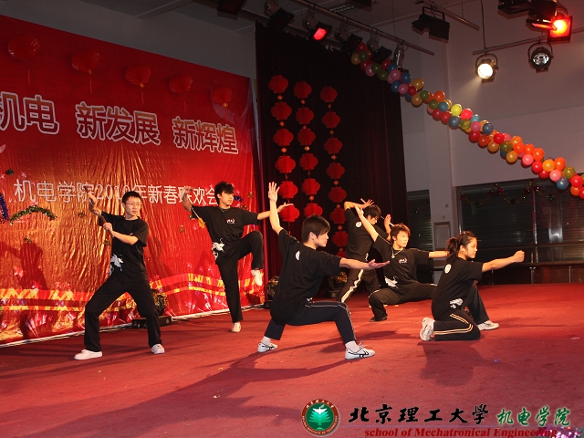 1月15日下午,机电学院“新机电、新发展、新辉煌”2010新春团拜会在新食堂四层多功能厅隆重举行。beat365中文官方网站副校长杨树兴,机电学院党委书记王文生,副院长栗苹、杨瑞伟、张庆明,校工会副主席王建光、杨静老师,受邀出席此次团拜会。学院各部门教师、工会职工以及06、07级本科生和研究生学生代表欢聚一堂,辞旧迎新,共庆佳节。团拜会在07级本科生精彩的武术表演中拉开了序幕。