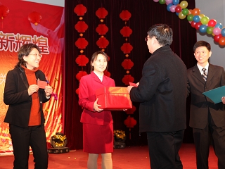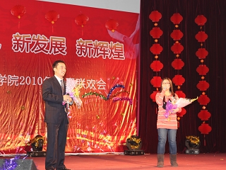 联欢会上,院党委副书记、副院长杨瑞伟宣读了2009年学院工会积极分子名单,并为获奖代表颁奖;学院工会青年联谊会会长陈曦宣读了新入会会员的名单;以及抽奖环节,一次次将联欢活动推向高潮。