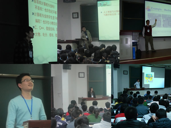 接下来,2007级优秀学长,全国大学生信息安全竞赛二等奖获得者刘丹、2009年全国数学建模一等奖获得者王飞和2009年全国计算机博弈大赛二等奖获得者唐志峰分别对各自参加的学科竞赛谈了自己的获奖感受,亲授参赛经验,也为同学们提出宝贵的参赛建议。