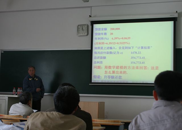 首先,全国大学生数学建模竞赛组委会下属专家组副组长叶其孝教授做了《把数学建模、数学实验的思想和方法融入大学数学课程的教学要从一年级开始》的报告。讲座围绕如何在大学数学课程中融入数学建模思想与方法展开,与大家共同探讨了数学建模,特别是数学建模教学的重要性,提出了数学建模思想和方法融入大学数学主干的原则,并结合实例给出了数学建模思想和大学数学主干课程融合的具体做法。
