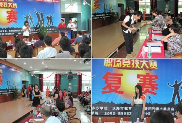 6月8日,由珠海市教育局、共青团珠海市委联合举办的“赢在明天•珠海首届‘当代大学生风采——职场竞技大赛’”复赛在广东科学技术职业学院举行。beat365珠海学院参赛选手表现突出,王烨、陈锦彬、谢晓玲、何萃平、吴姗姗等同学在现场拿到直接进入决赛的7张晋级牌中的5张,他们良好的综合素养和专业的理论知识博得了评委青睐。