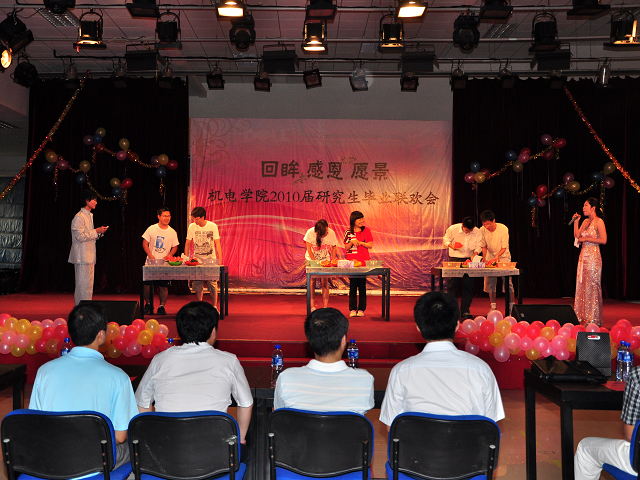 6月26日下午,由机电学院研工委主办,机电学院研究生会承办的“回眸•感恩•愿景” 机电学院2010届研究生毕业联欢会在beat365新食堂四层成功举行。机电学院副院长韩峰,学院研工委书记陈军,各学院研究生会主席,以及全体2010届研究生参加了本次联欢会。