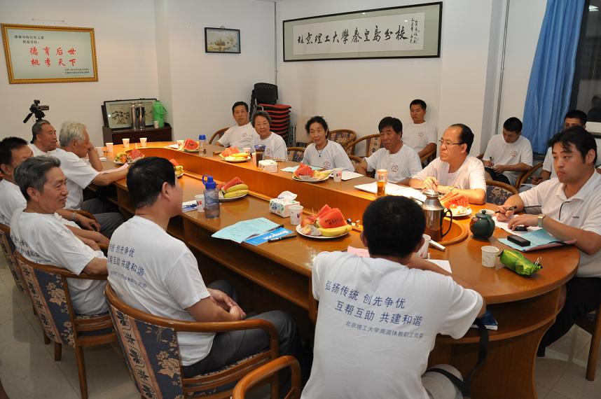 各位老同志和保安代表分别针对党建工作室的工作宗旨及细则,党建工作室活动开展方式,老同志对保安人员的培训内容及方式、方法,保安人员对高龄特困老人的帮扶措施和办法,老同志和保安人员互帮互助的形式等结合学校的实际情况进行了讨论。